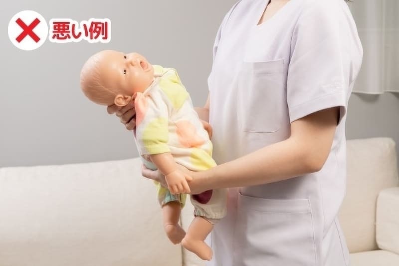 - 抱っこする人の肘が体から離れ、手や手首だけで支えている