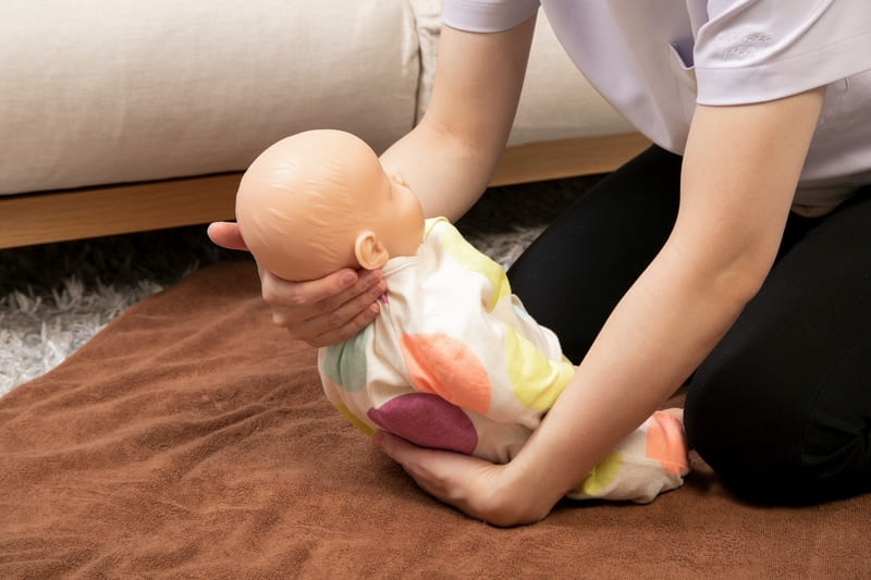 また、正座や両膝をついたままの姿勢で、抱き上げてから立ち上がる動作も背中や腰への負担が大きいため、赤ちゃんを低い位置から抱き上げるときは、片膝をつき、できるだけ赤ちゃん側にママやパパの身体を近づけ、密着してから立ち上がりましょう。