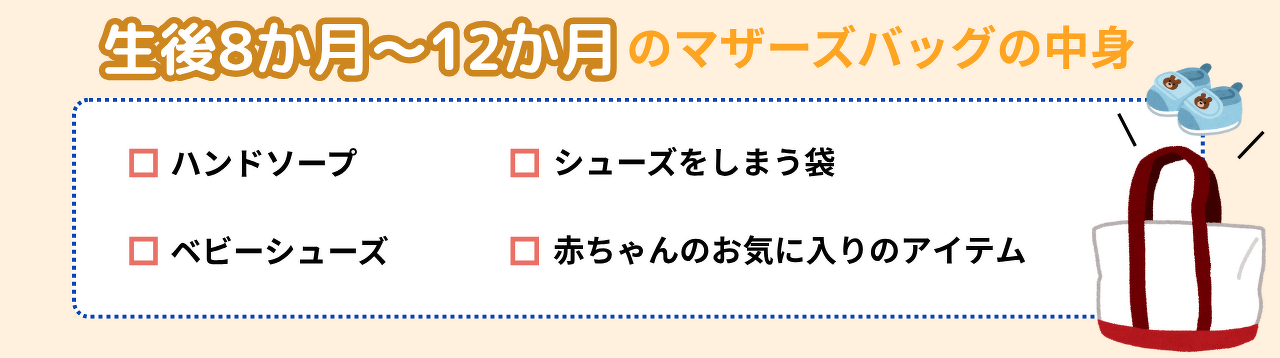 新生児~生後3か月のマザーズバッグの中身と基本的には変わりませんが、次のようなものが加わります。