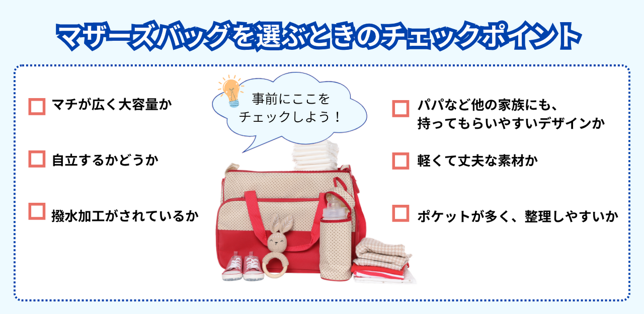 マザーズバッグの中身を確認して、安心してお出かけしましょう!