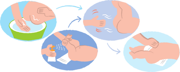 おむつ交換やスキンケアを見直すためのヒントと共に、おむつかぶれの対処法について説明します。