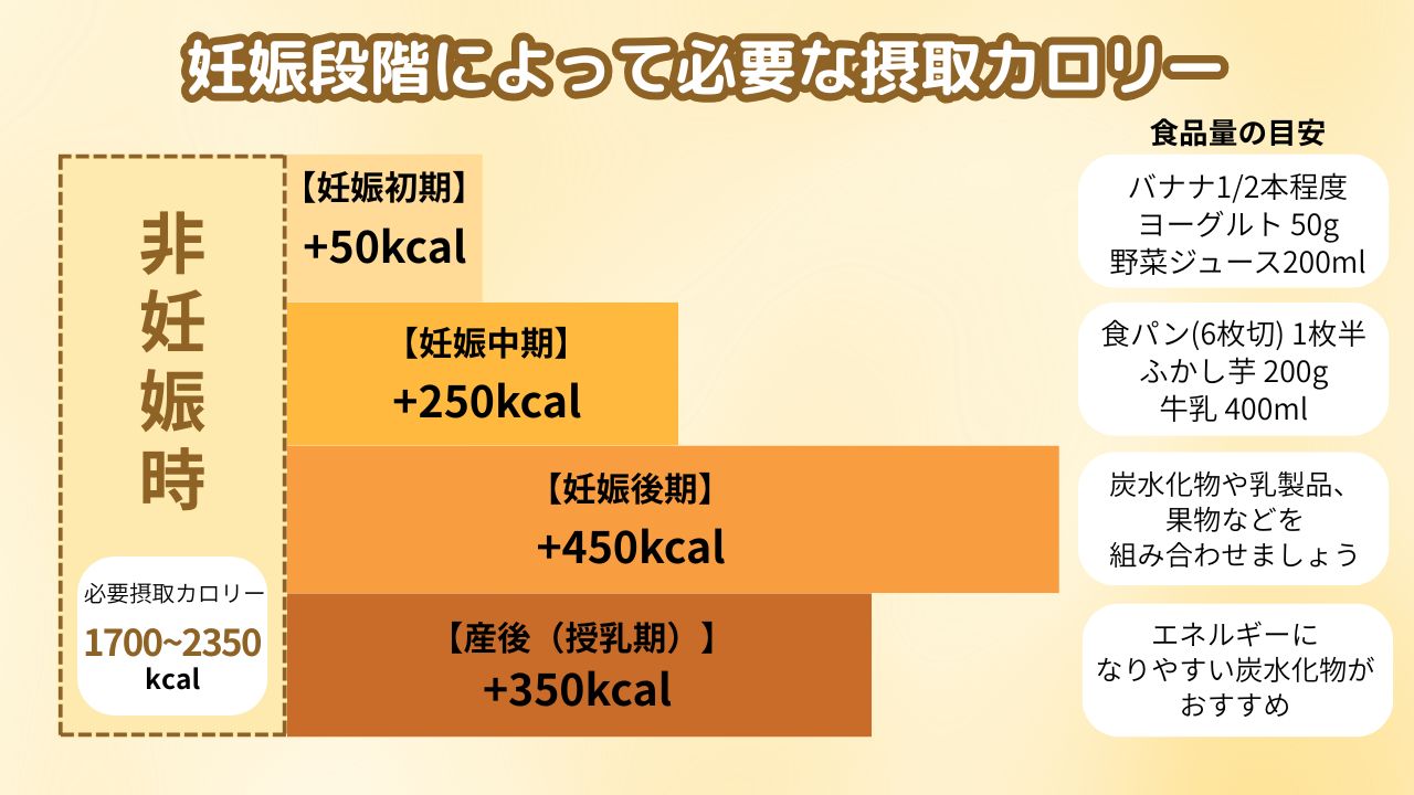 ここでは、妊娠期ごとにプラスしたい必要なカロリーを説明します。