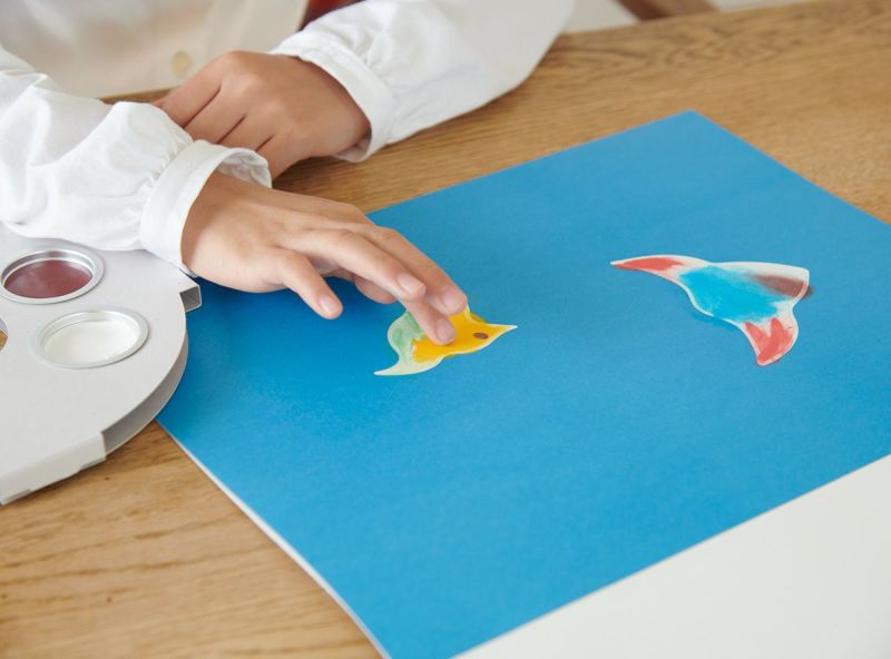 絵の具を、混ぜ合わせたり、塗りつけたり、描いたりして、お子さまの心を解放するように自由に楽しめます。