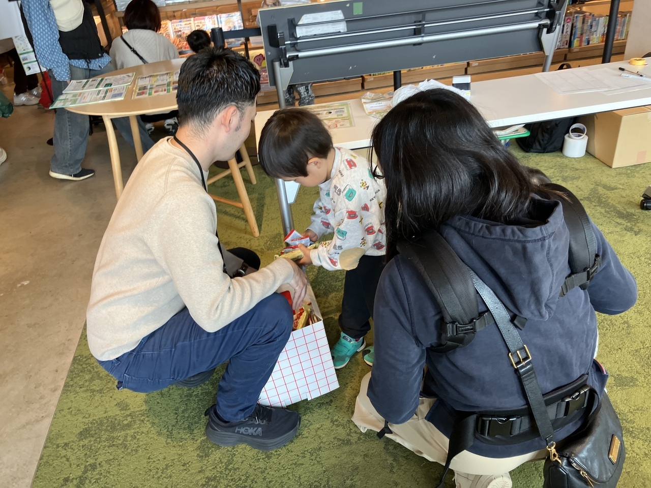 スタンプを集めると、おかしのつかみ取りに挑戦できたり、同日開催のパン祭りのチケットがもらえたりと、ゴールの楽しみもいっぱいでした♪