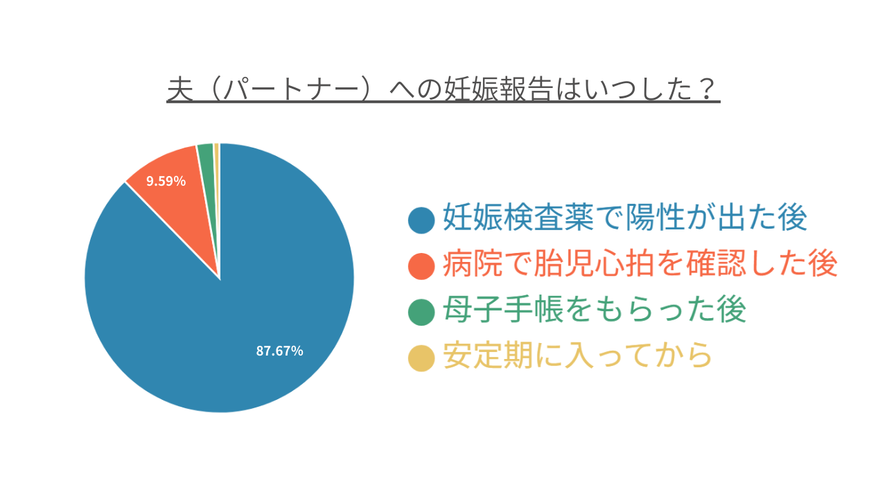 夫(パートナー)には約8割が妊娠検査薬で陽性が出たタイミングで報告
