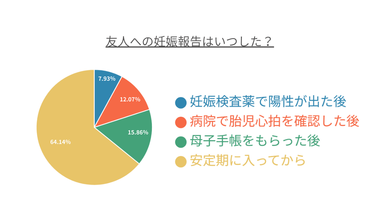 友人への妊娠報告のタイミングとしては、安定期に入ってからが大半でした。