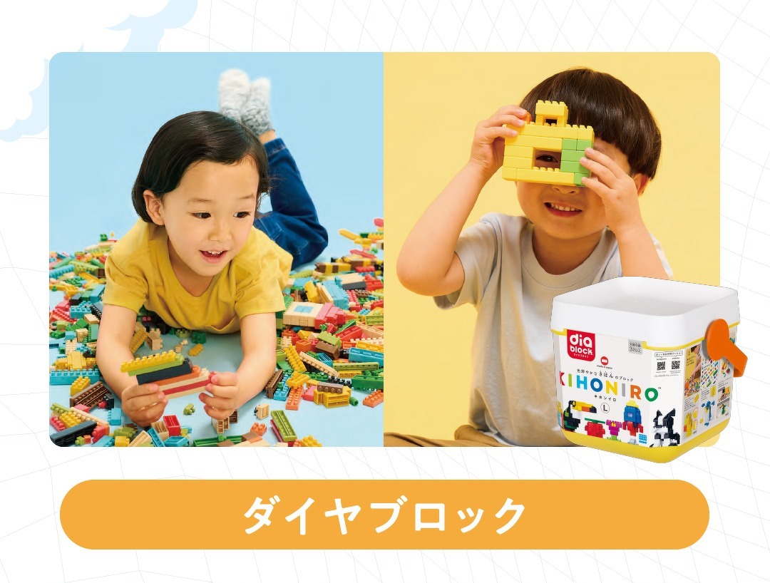 ダイヤブロックでは、自由に組み立てて遊べるブロック体験を展開。